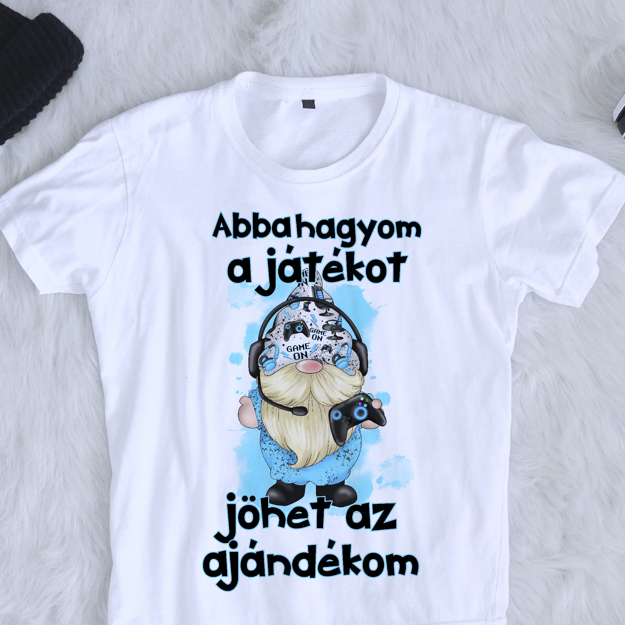 Abbahagyom a játékot, jöhet az ajándékom gyerek póló
