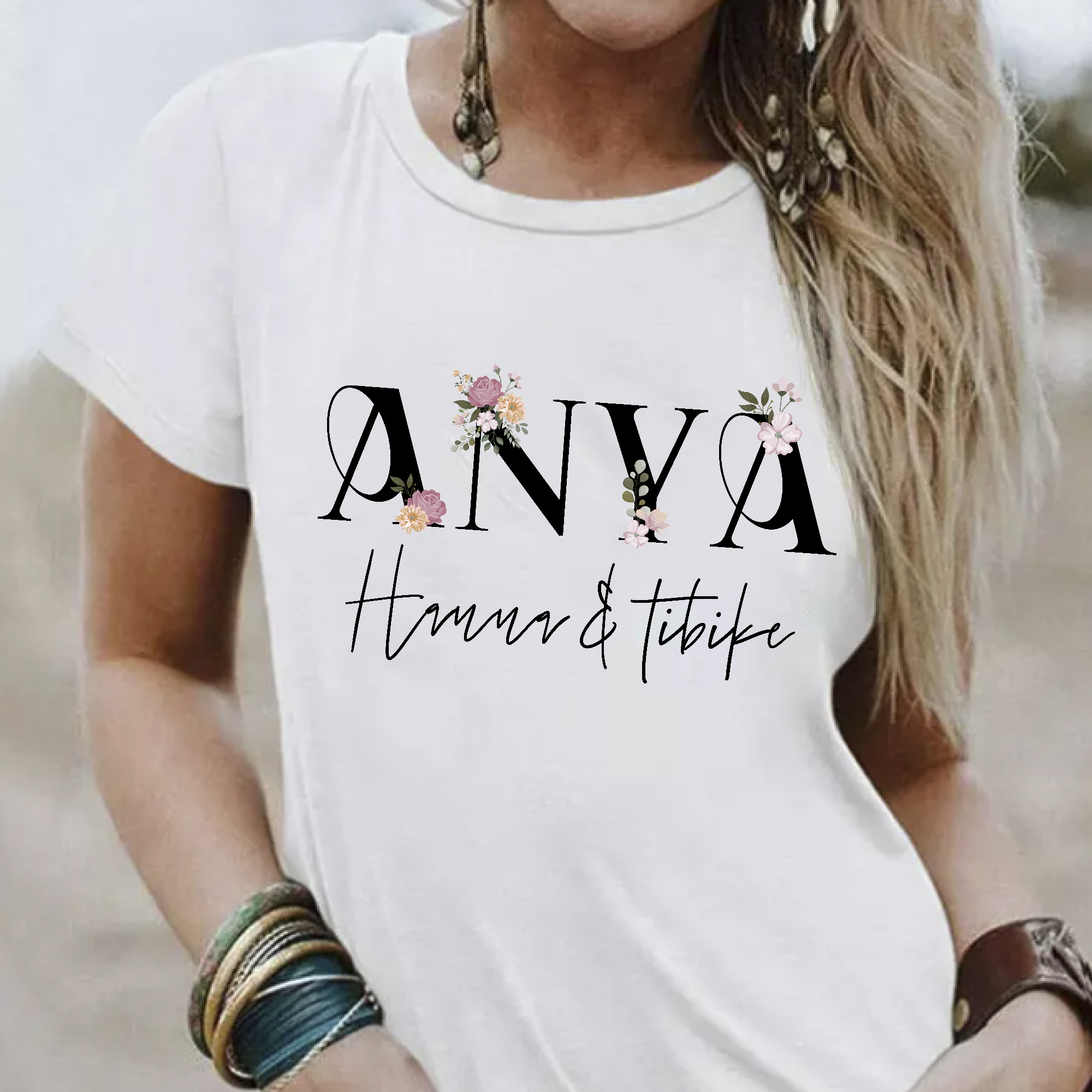 Anya feliratú póló virágos betűkkel és nevekkel