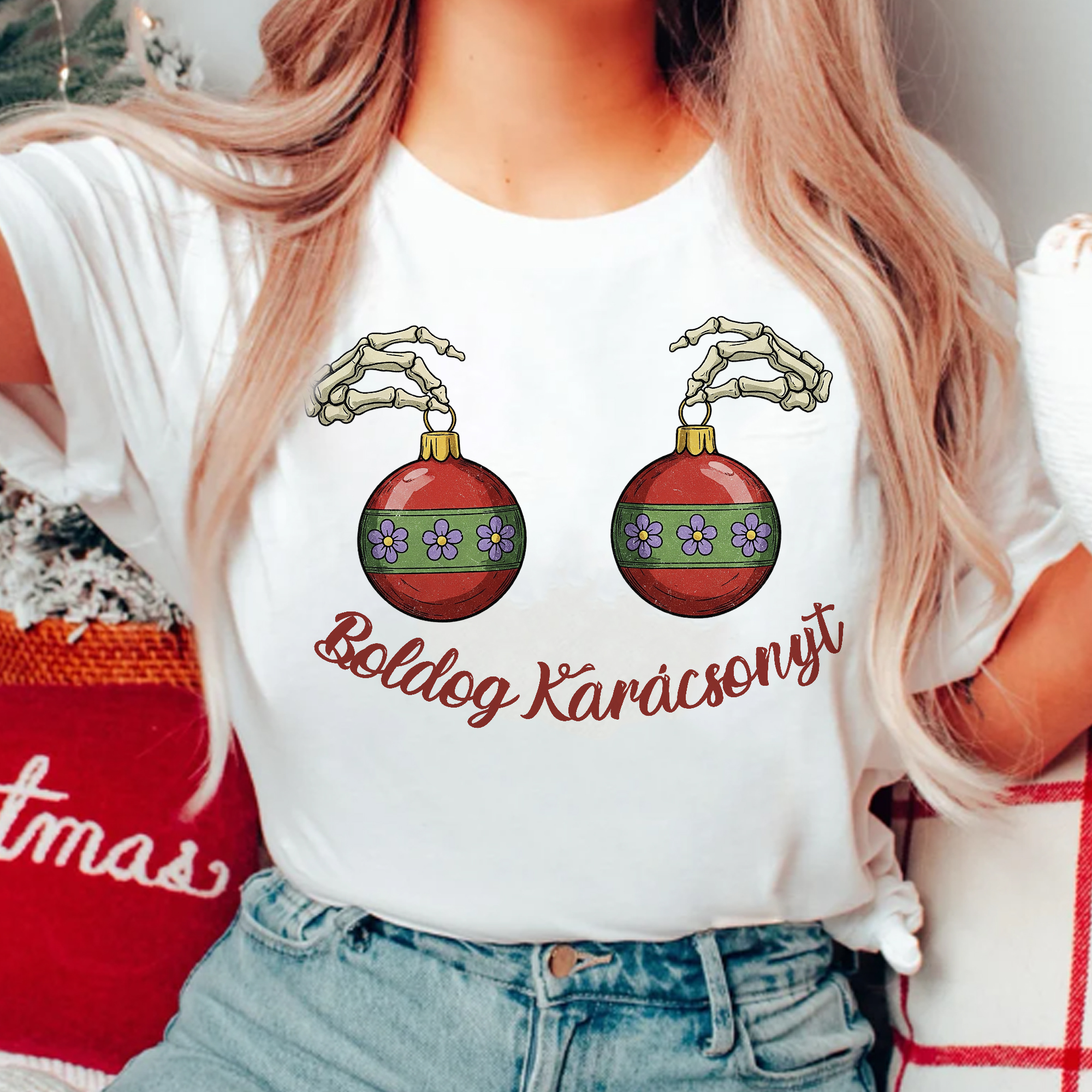 Boldog karácsonyt, gömbdíszes póló vagy pulcsi
