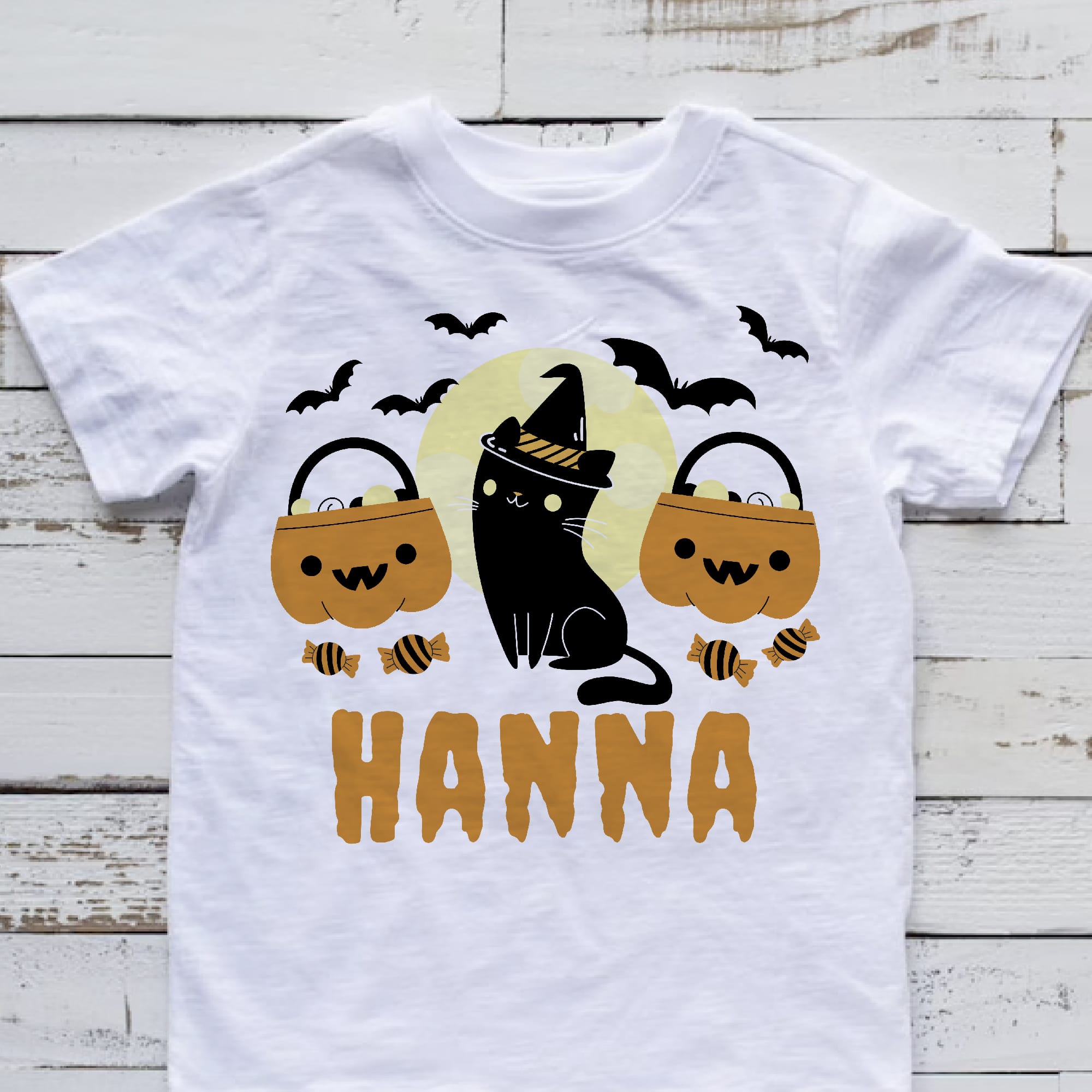Halloweeni cukorka gyűjtő cicás gyerek póló