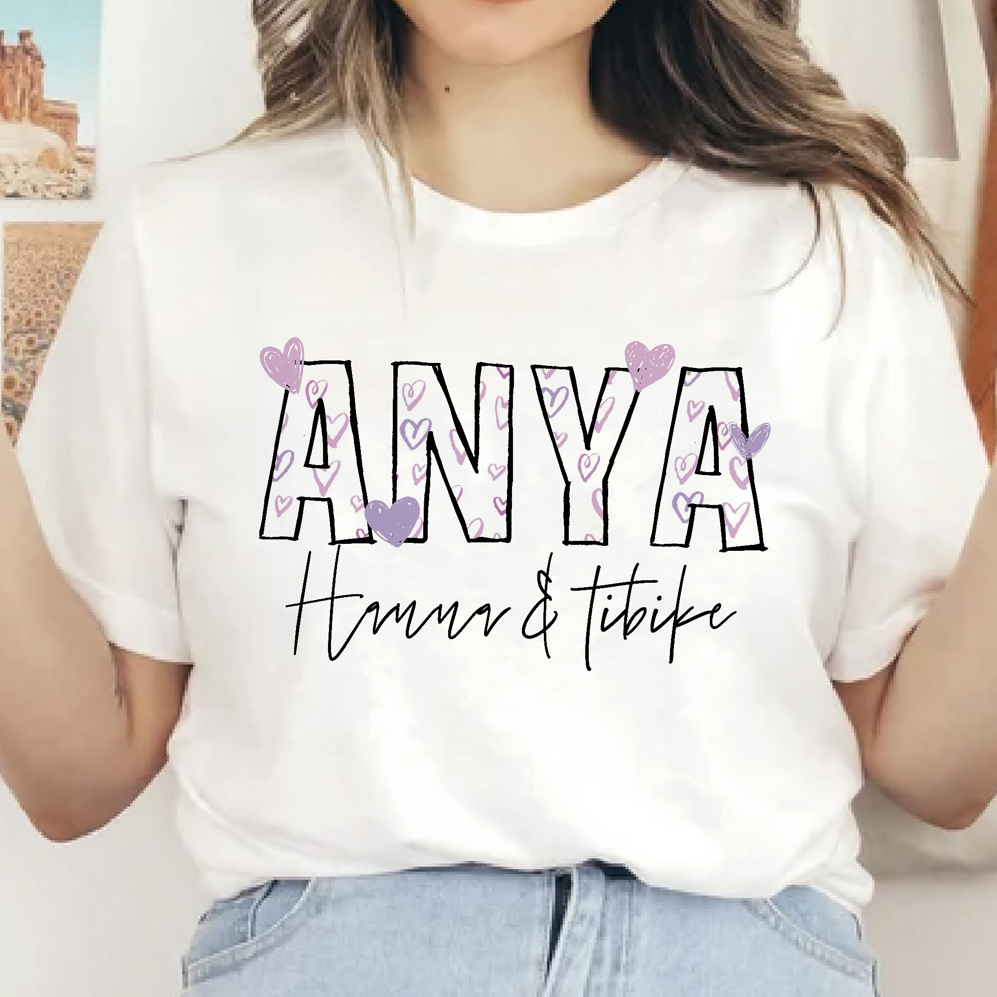 Szivecske mintás anya feliratú póló nevekkel